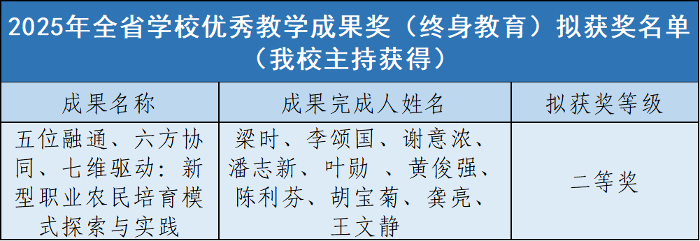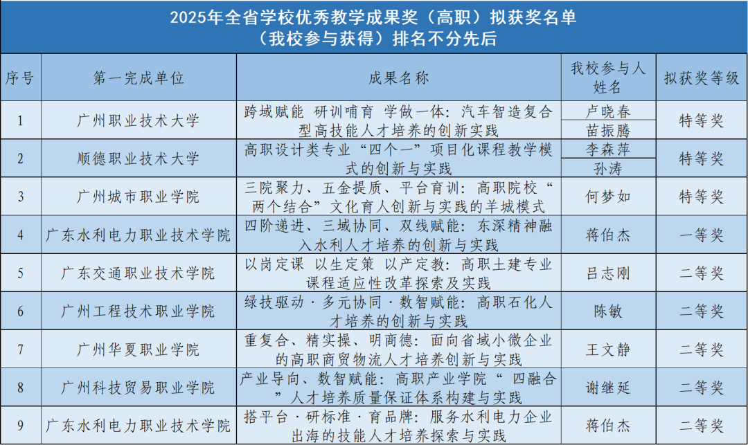 碧职荣耀 | 我校拟获2025年全省学校优秀教学成果奖2项,作为参与单位拟获奖9项