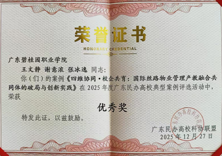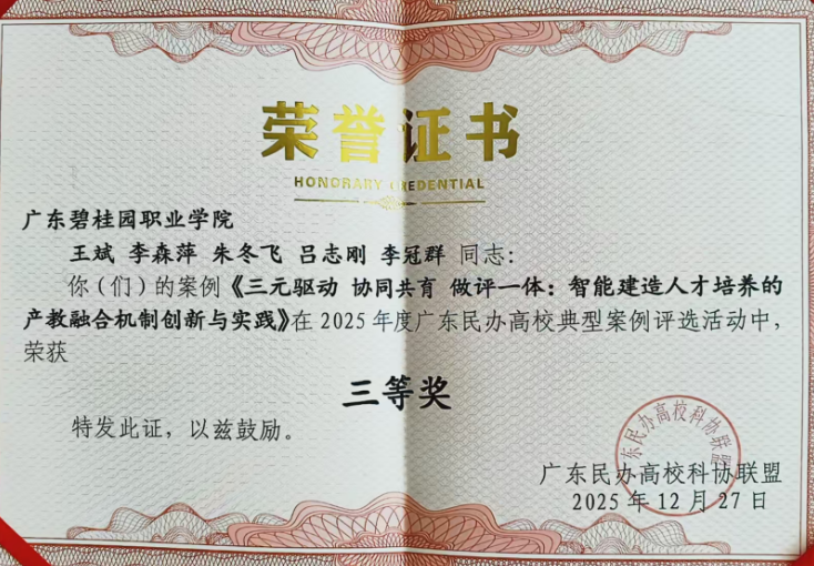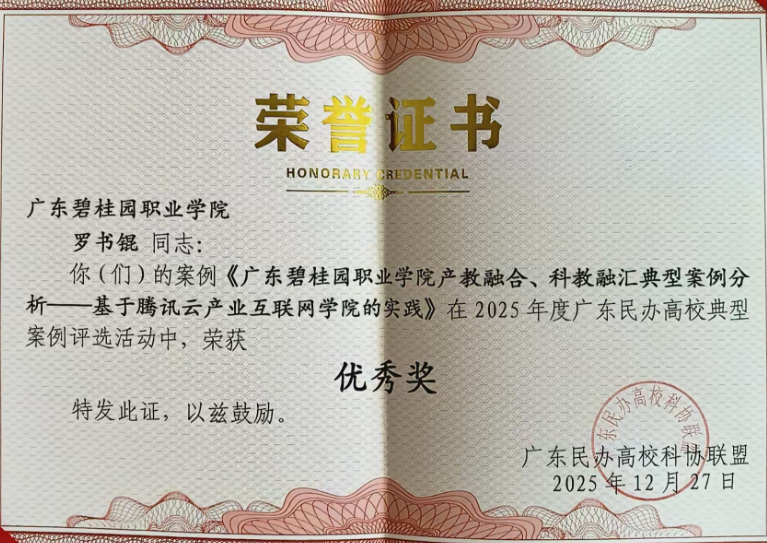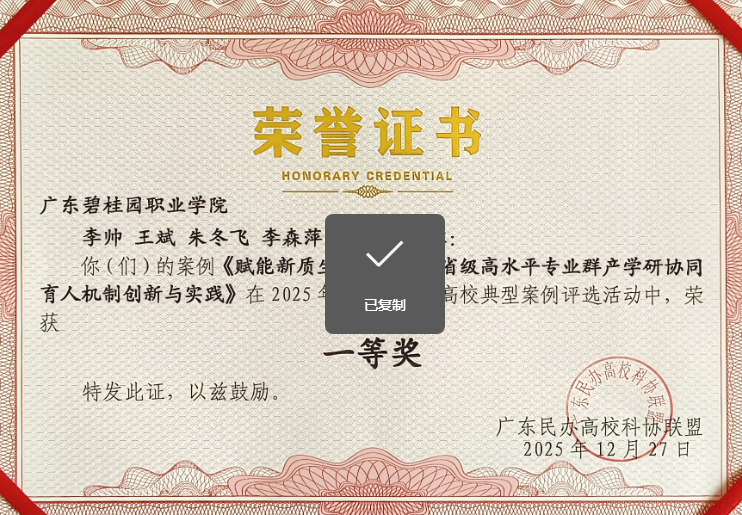 冬日羊城,科教聚力。2025年12月27日,广东民办高校科协联盟(简称“联盟”)2025年年会在广州南洋理工职业学院隆重召开。本次会议由广东省科学技术协会、广州市科学技术协会等单位指导,广东民办高校科协联盟主办,广州南洋理工职业学院承办。广东碧桂园职业学院作为联盟成员单位和获奖单位受邀参会。